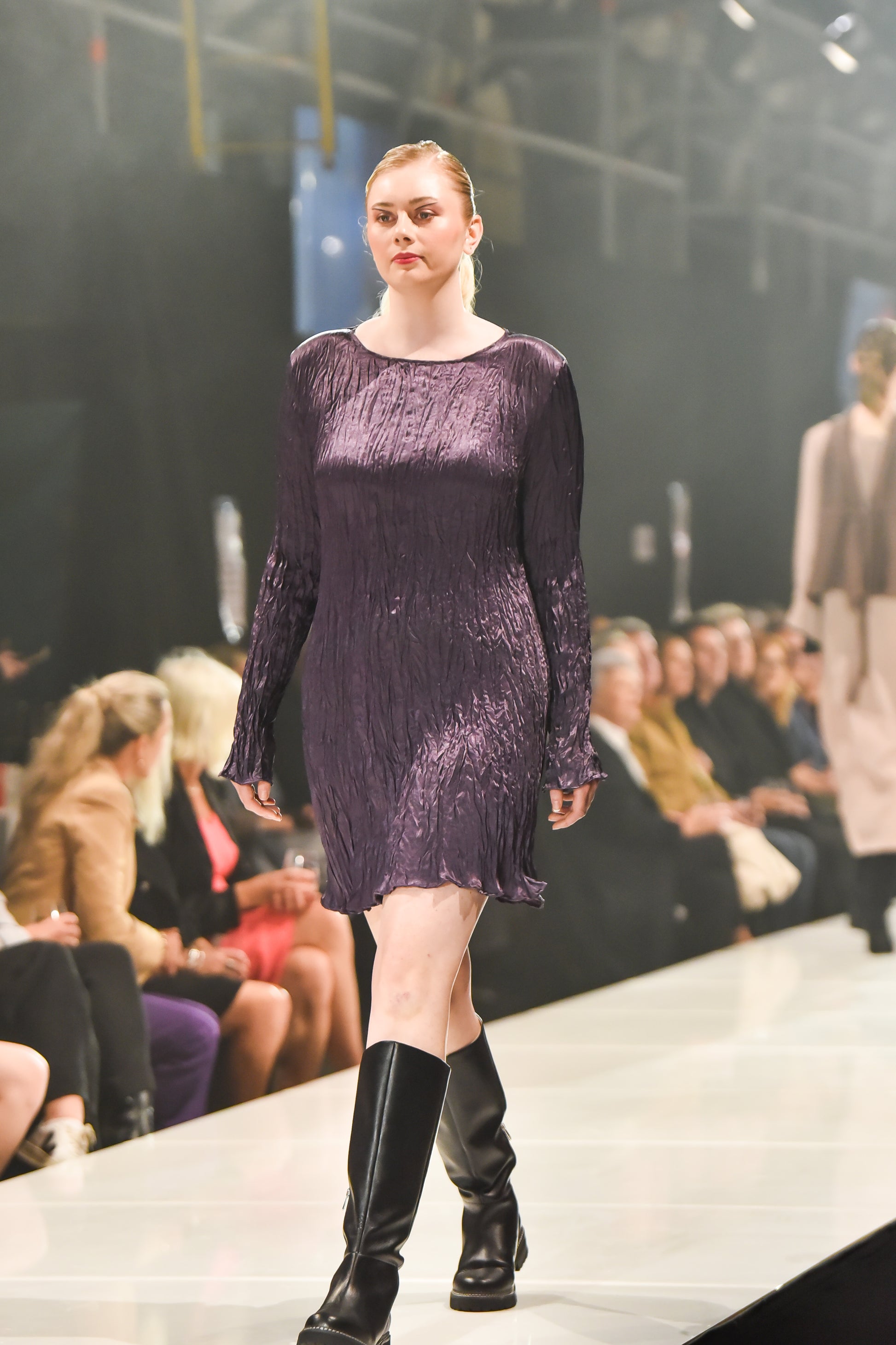 Hand-pleated dress with subtly fluted hems creating a soft flare silhouette.