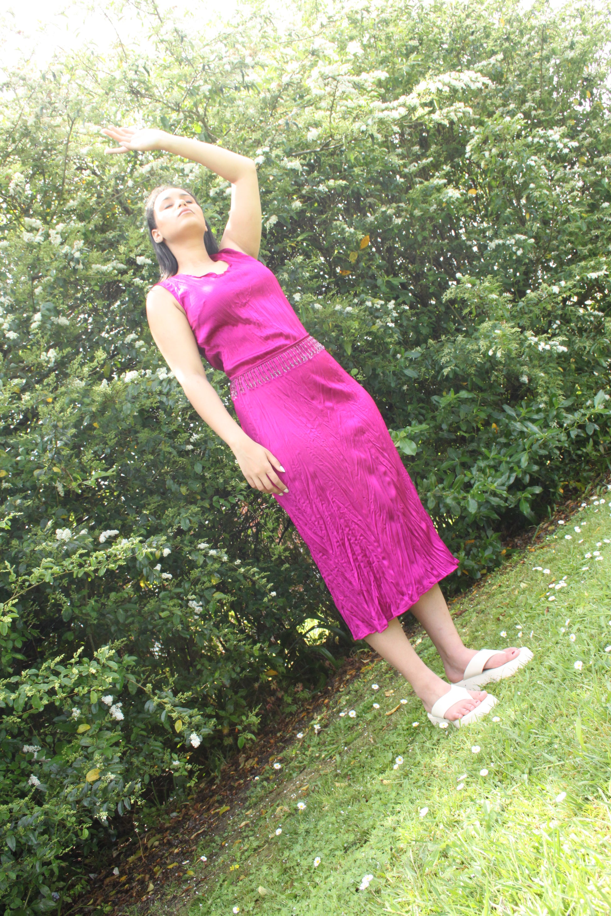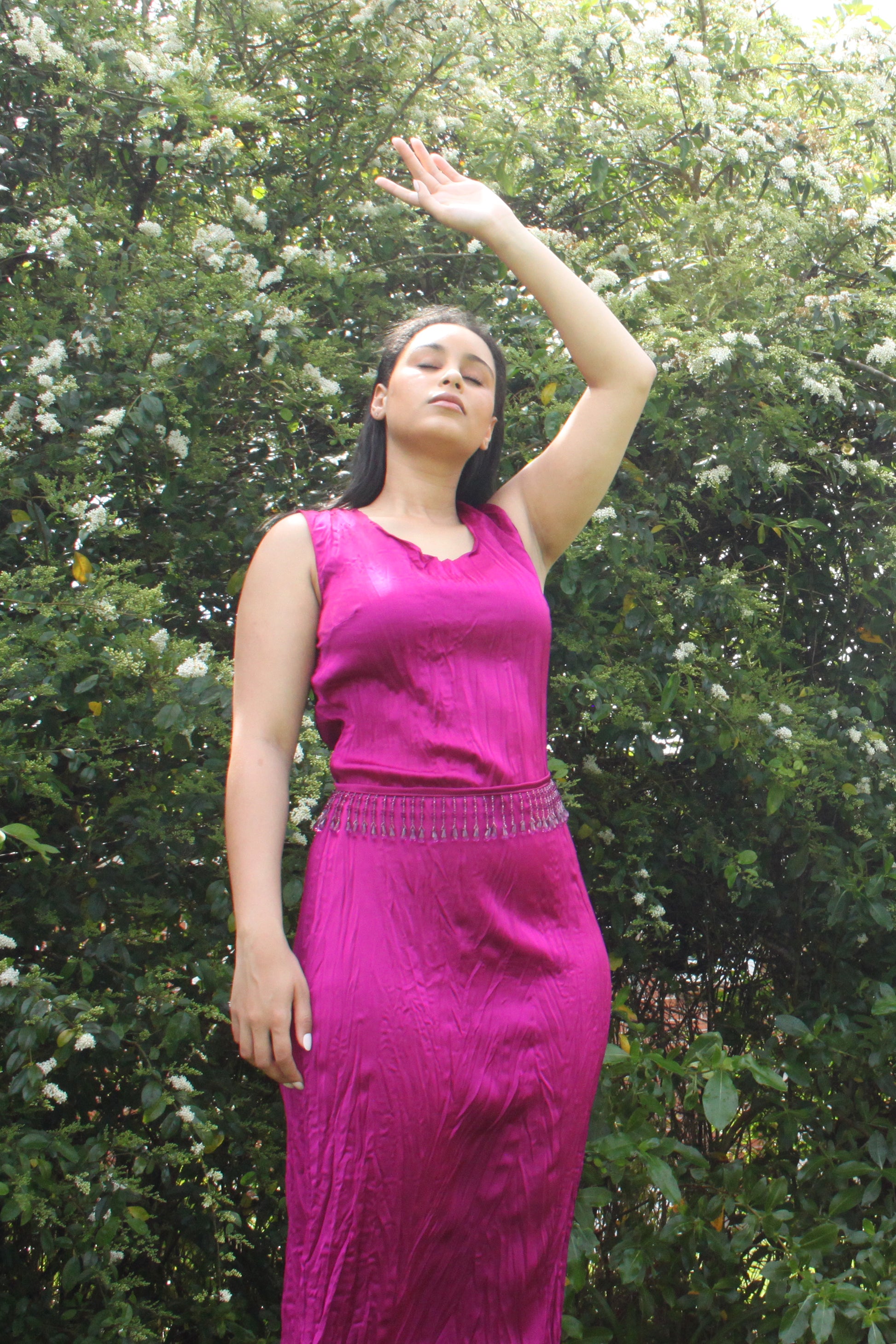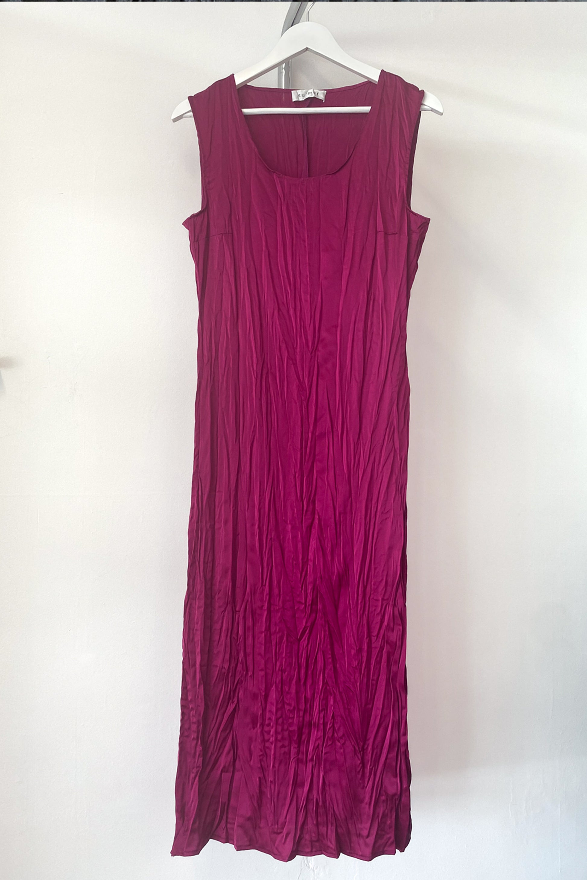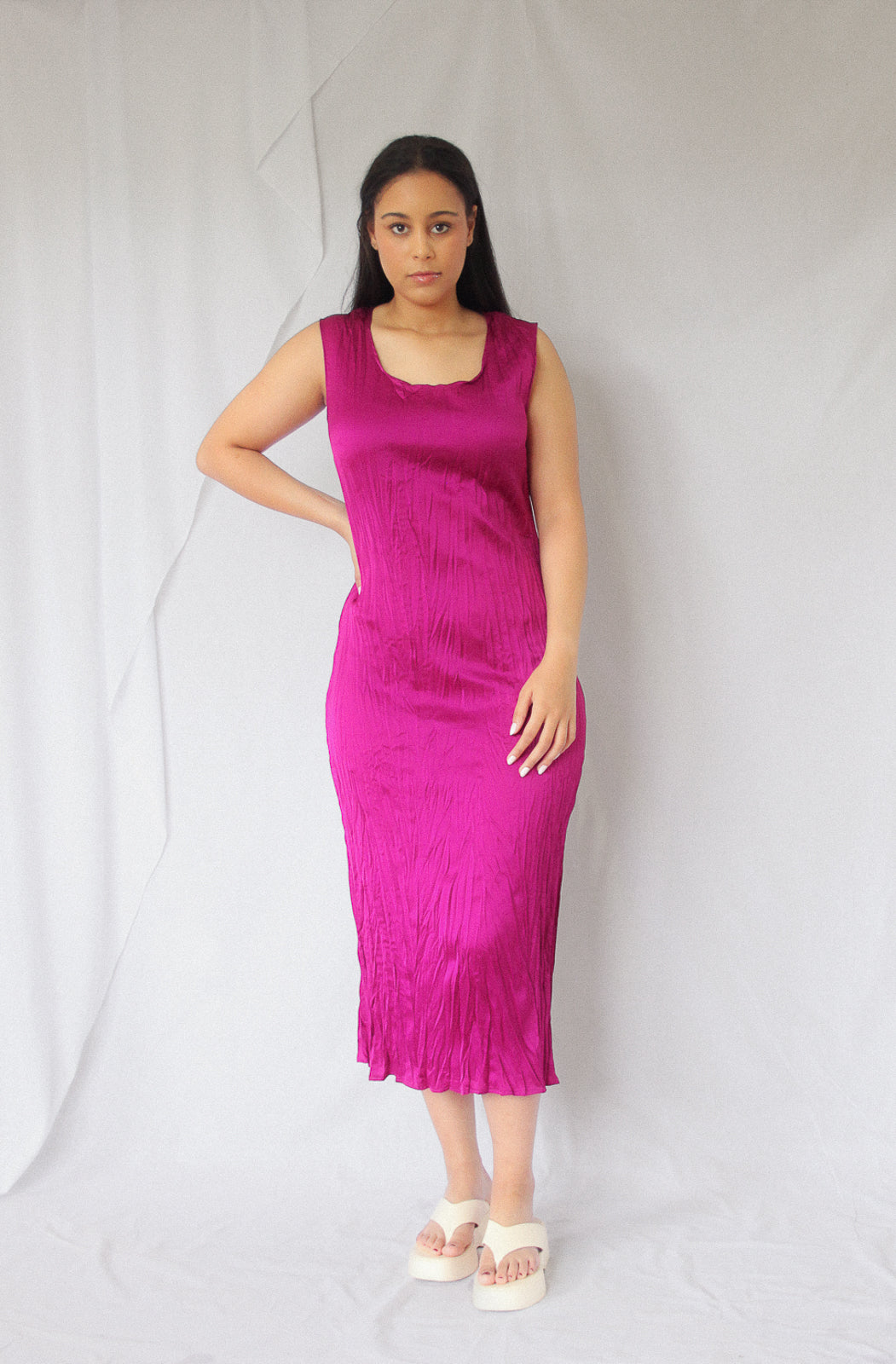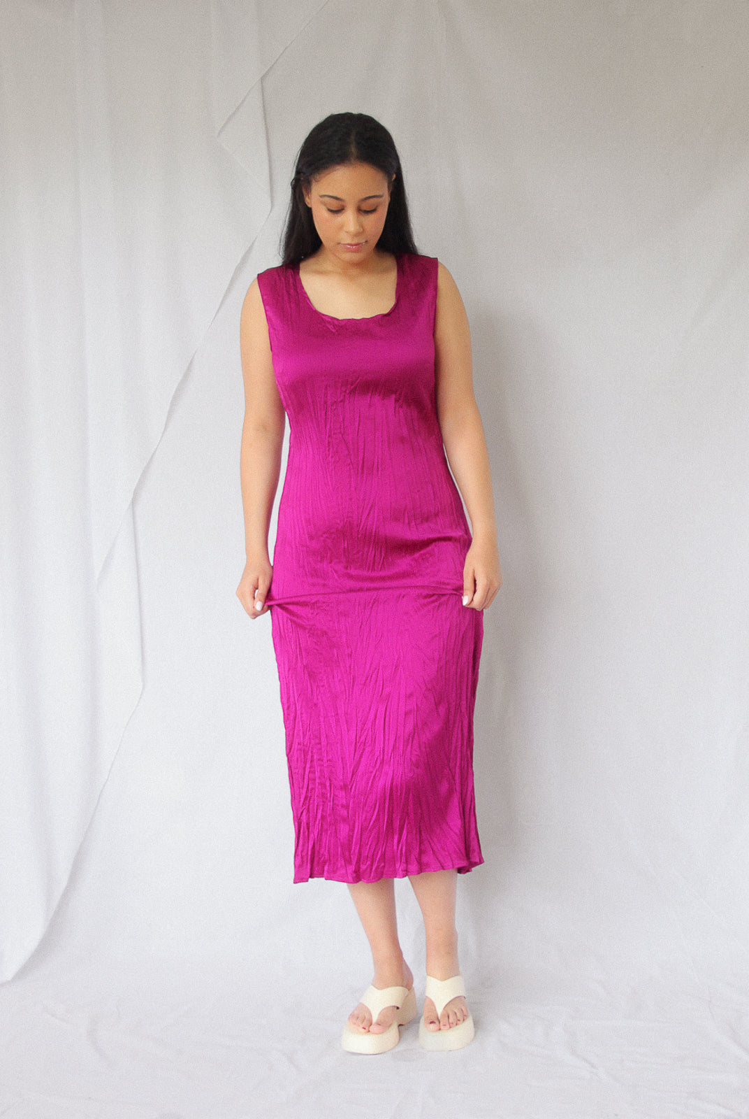 Working off the concept of a classic knit tank dress and made in luxurious Japanese satin with a hand-pleated finish - this piece is effortlessly elegant, paired perfectly under an oversized shirt for a casual day look, and can be easily styled up for any occasion.