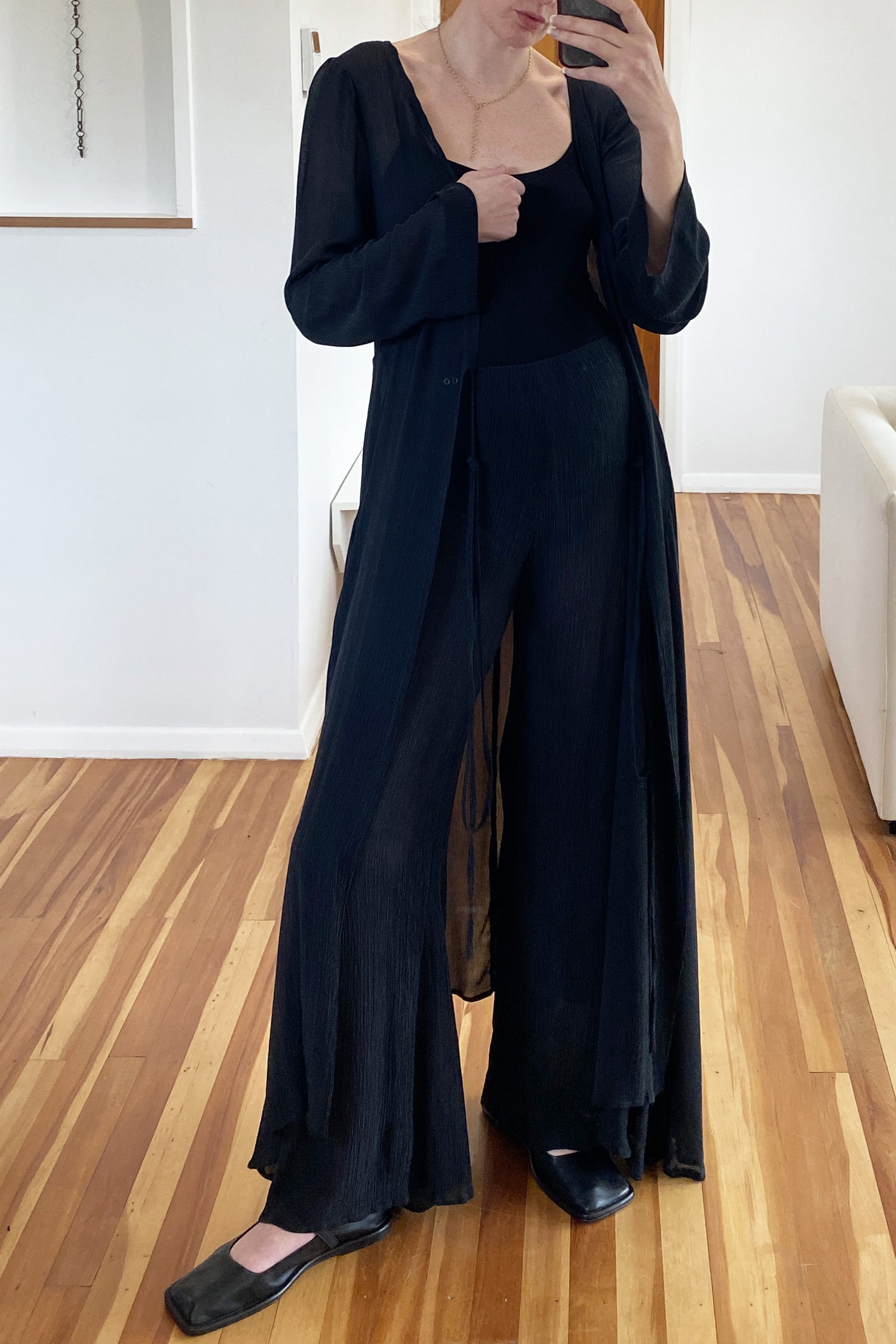As effortless as it is elegant, the Wisteria Wrap dress hugs the waist with beautiful cascading drape falling from the hips. This piece can be styled back to front and also open as a flowing house coat.