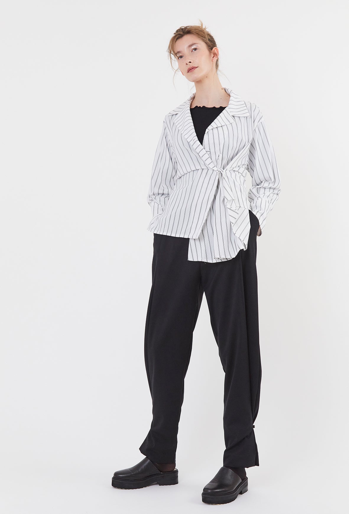 - Tie and loop details allow the shirt to be worn loose or wrapped for a fitted waist