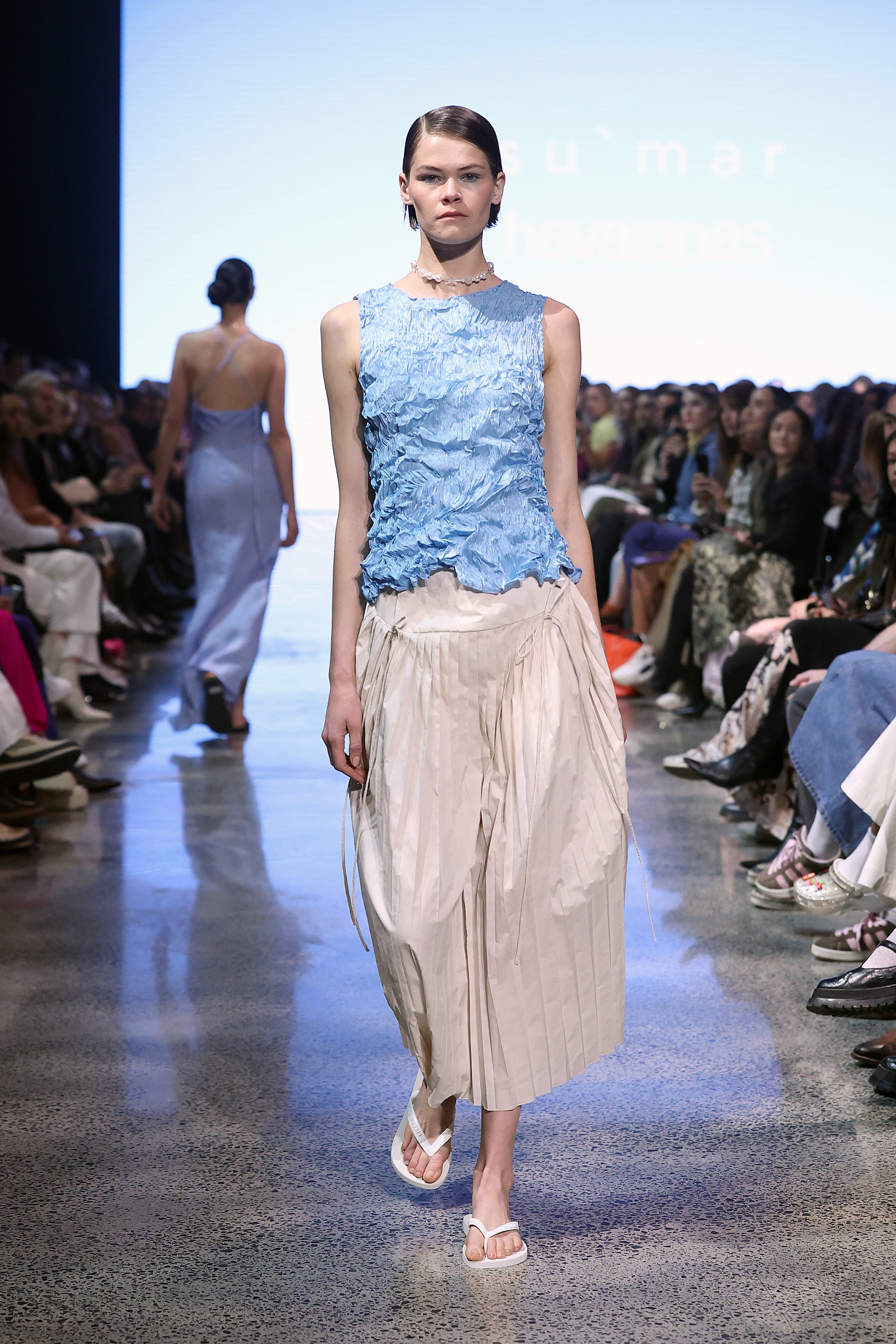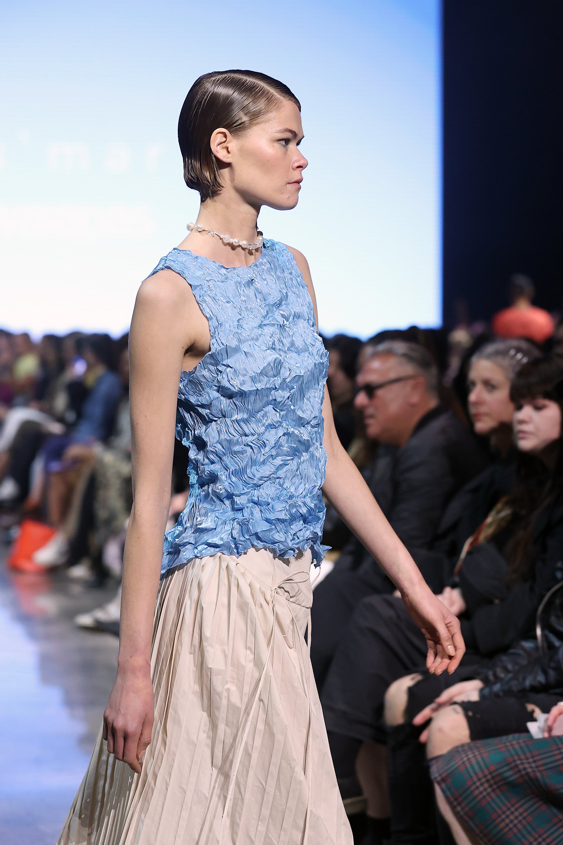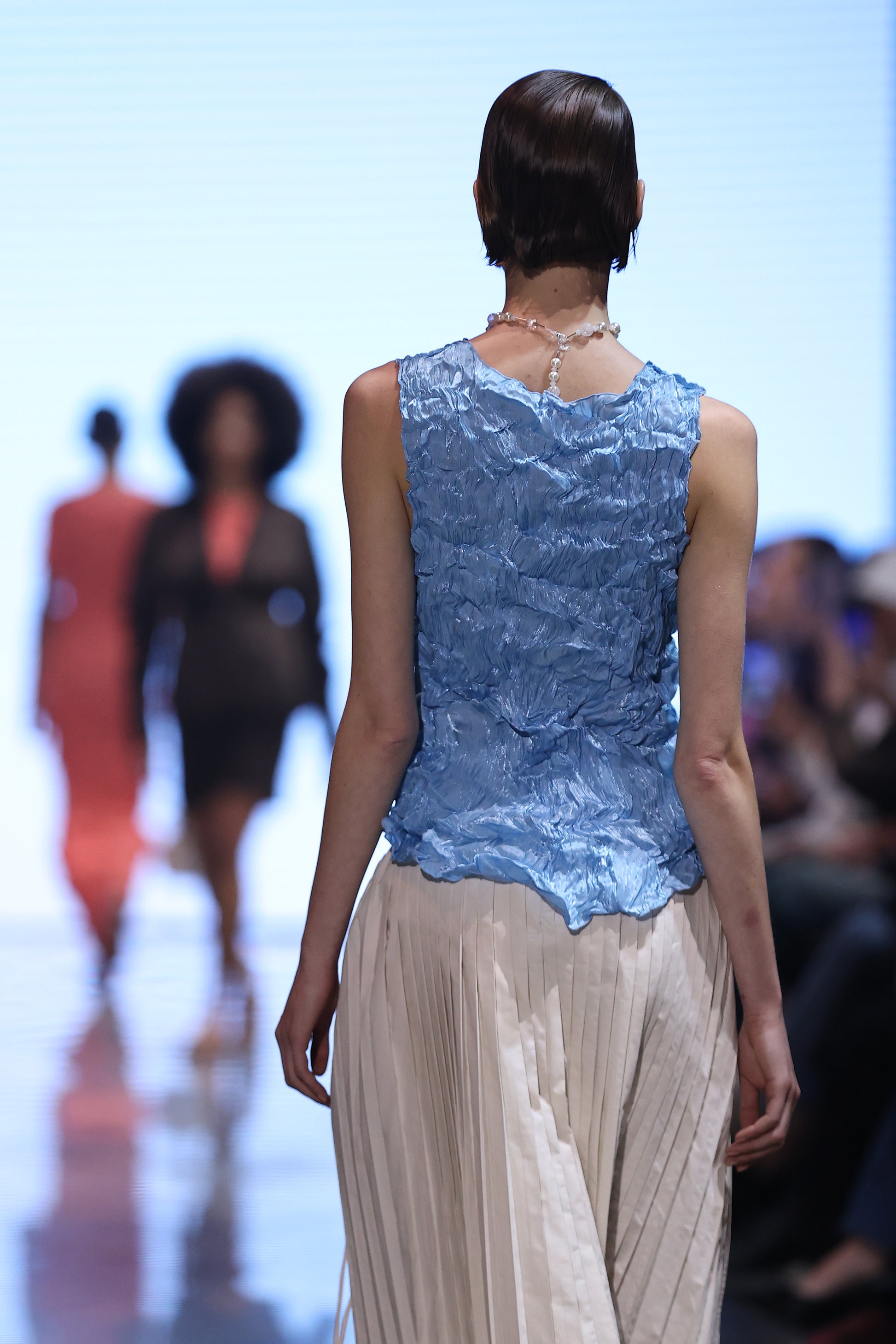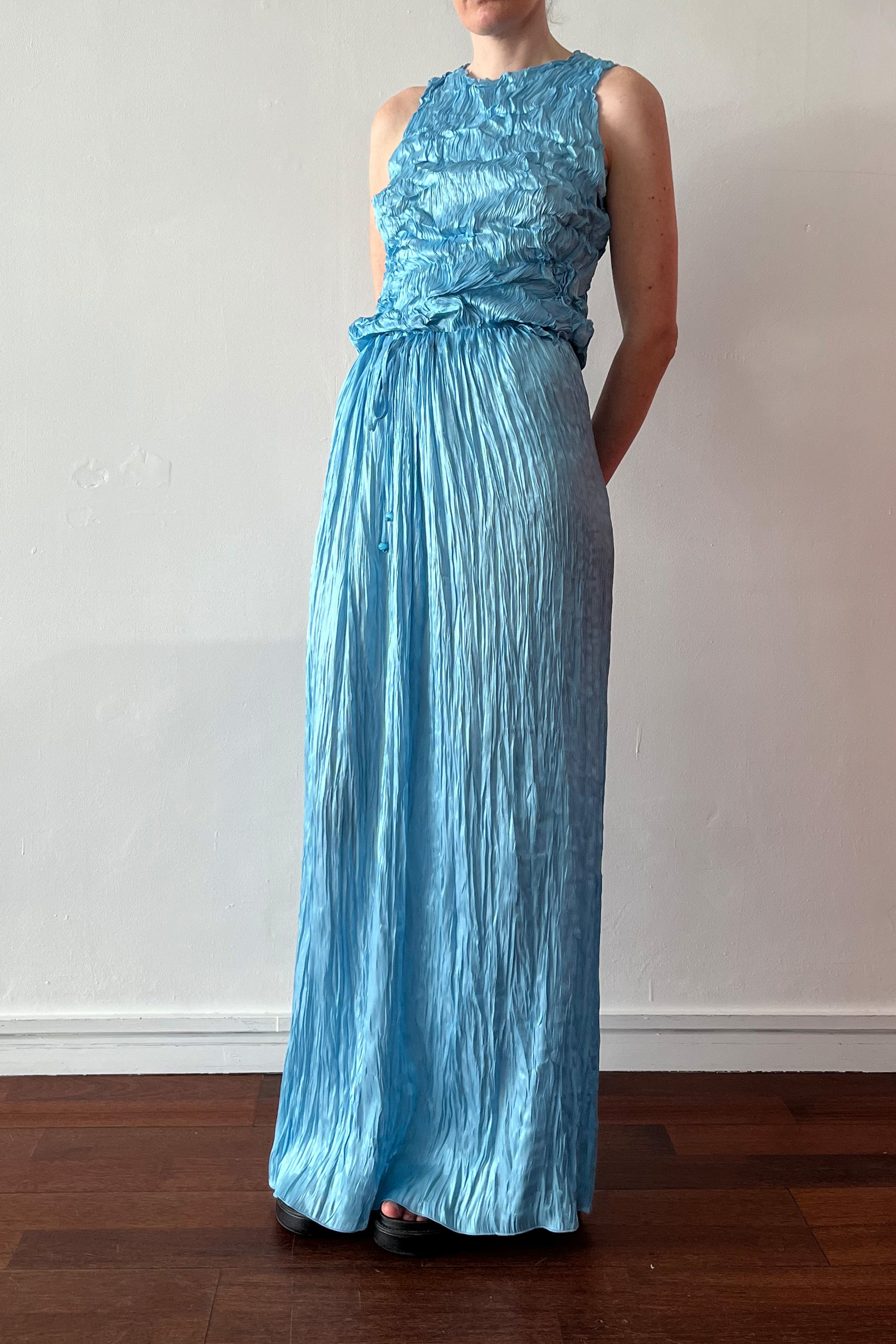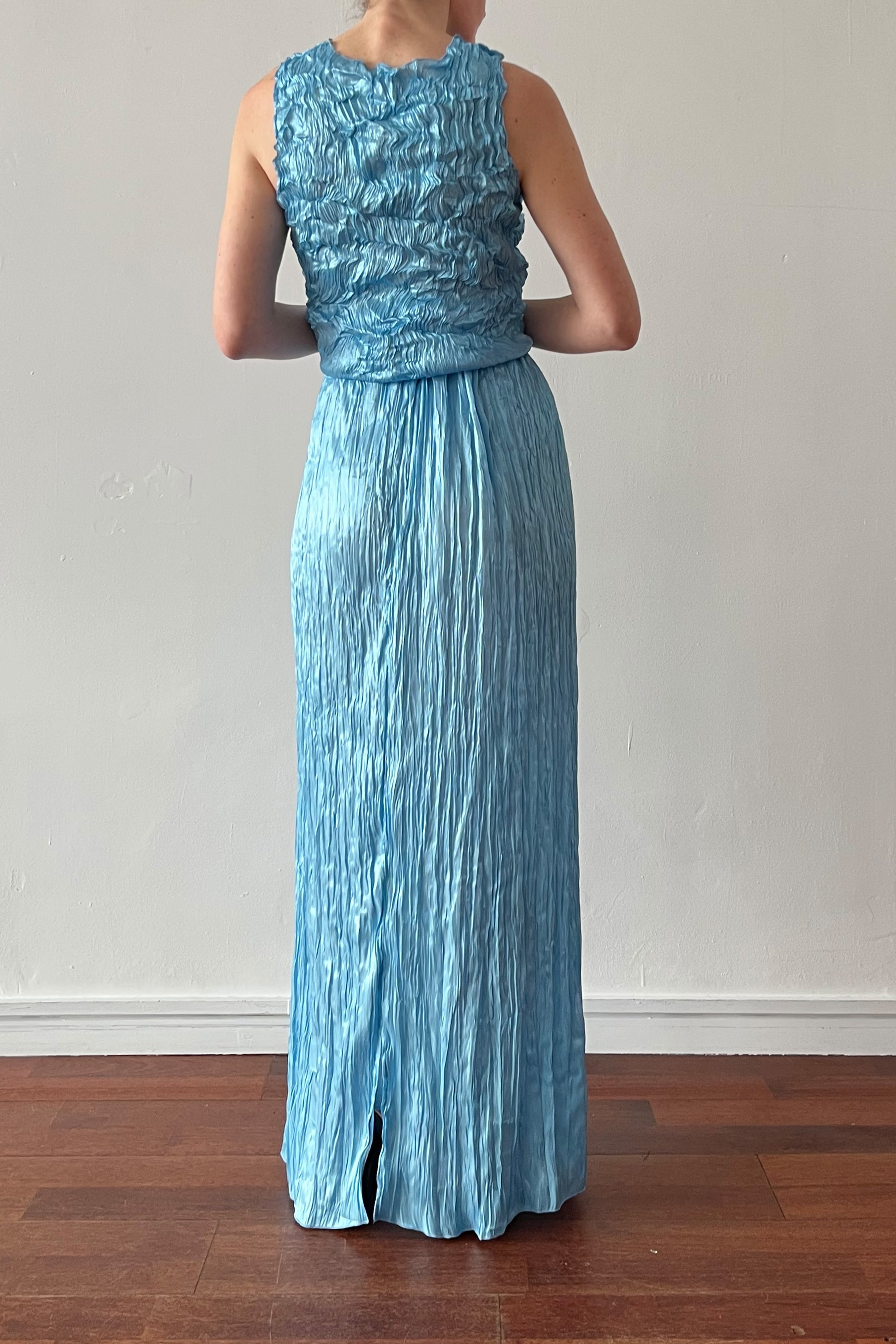 A classic summer tank with an oceanic feel, hand-pleated with a 2-way crush pleating technique creating an ethereal 3D texture.