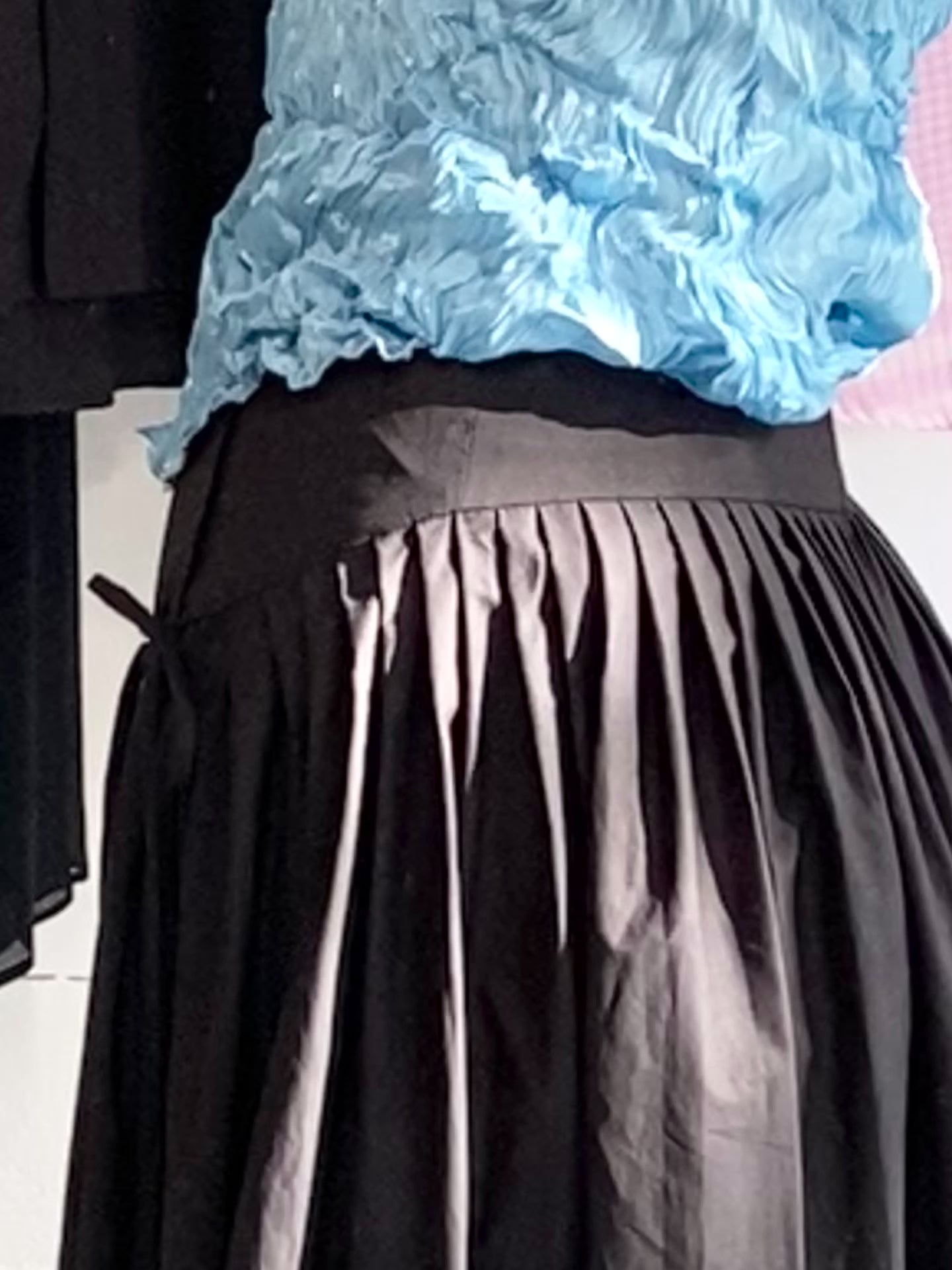- Crisp pleating in skirt.